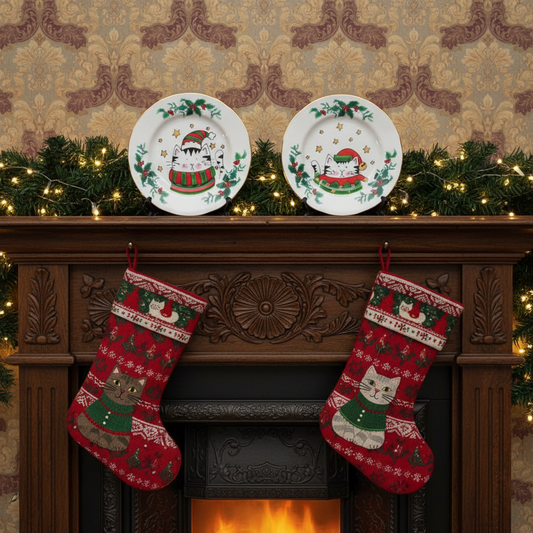 Jingle & Jester Christmas Cat Wall Plate Set - The Vintage Pimp