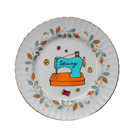 Sew What? Sewing Machine Wall Plate - The Vintage Pimp - Plate No. 205 - Sewing Theme - Hand Painted