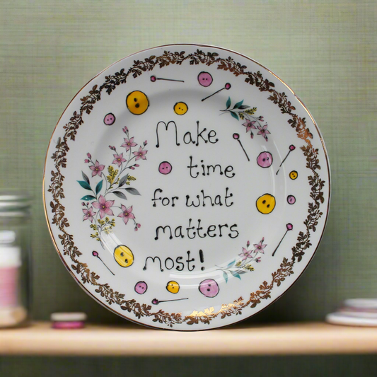 Make Time Sewing Wall Plate - The Vintage Pimp - Plate No. 212 - Sewing Theme - Motivational - Hand Painted