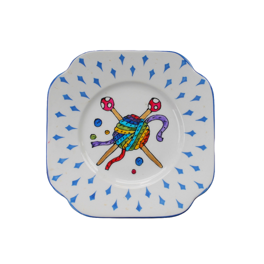 Knit And Natter Wall Plate - Plate No. 28 - The Vintage Pimp - Knitting Theme - Motivational - Hand Painted