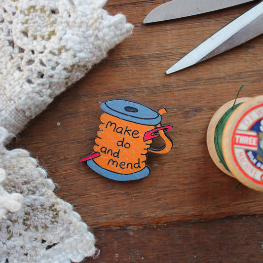 Wooden Make Do And Mend Cotton Bobbin Brooch - Birch Wood - Wartime - Vintage - Eco