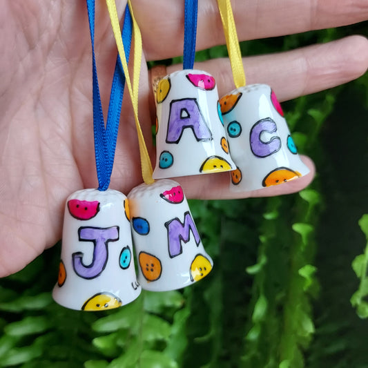 Ceramic Thimble Monogram Buttons Decoration - Alphabet - A-Z - Hand Painted - Fine China - Initial