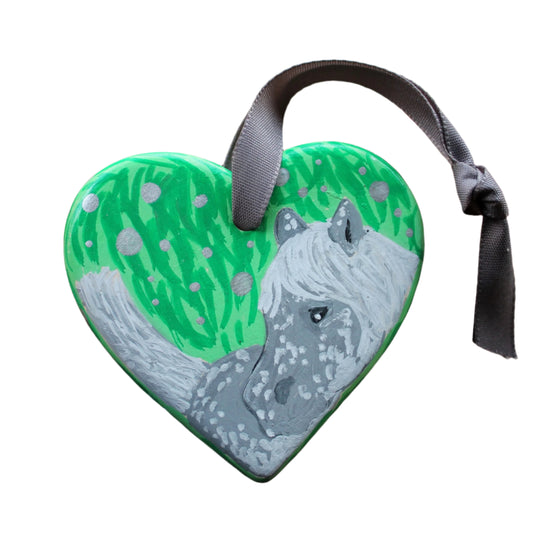 Grey Dapple Pony Ceramic Heart Decoration - Willow - Hand Painted - Horse