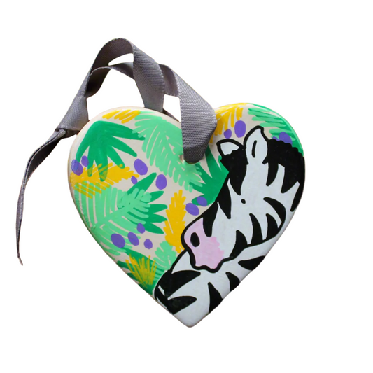 Ceramic Zebra Heart Decoration - Hand Painted - Zebra Lovers Gift