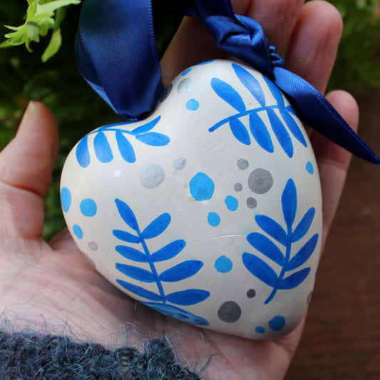Blue Flamingo Ceramic Heart Ornament - Hand Painted - Flamingo Lovers Gift