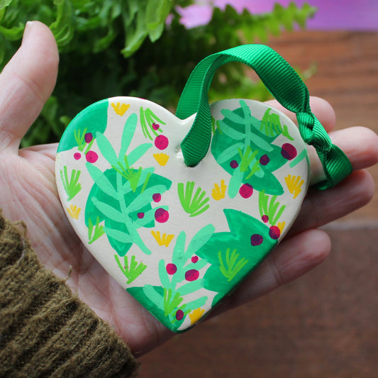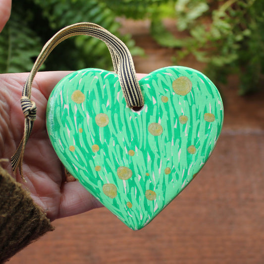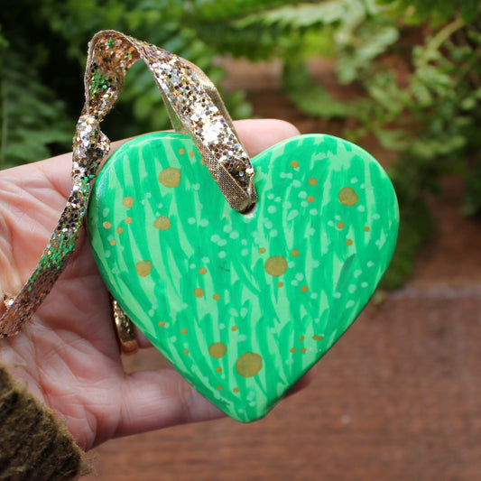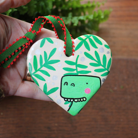 Green Dinosaur Ceramic Heart Decoration - Hand Painted - Dinosaur Lovers Gift