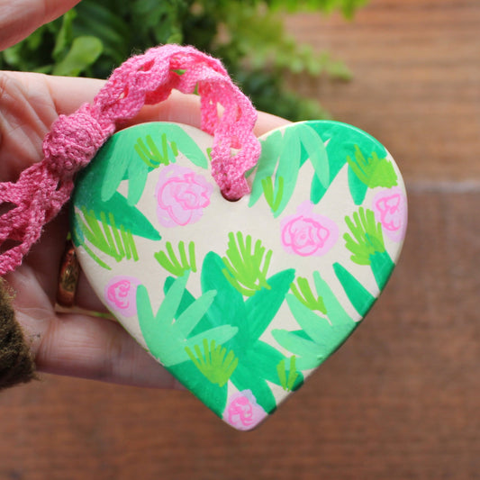 Leopard Ceramic Heart Ornament - Hand Painted - Animal Print - Roses