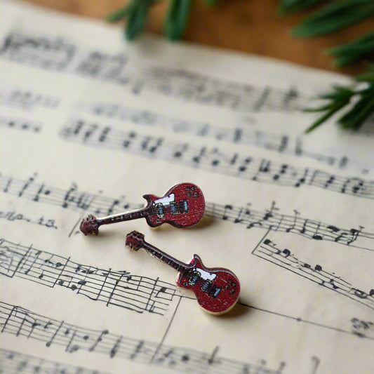 Wooden Electric Guitar Stud Earrings - Birch Wood - Steel - Low Allergy - Eco