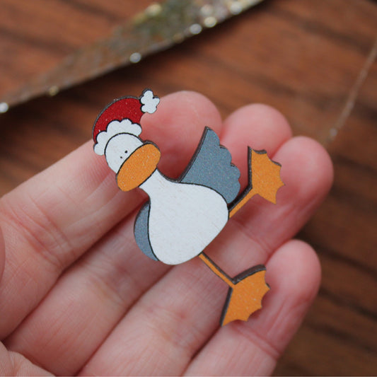 Wooden Christmas Seagull Brooch - Birch Wood - Eco