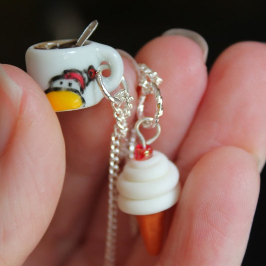 Summer Days Seagull & Ice Cream Ceramic Necklace - Limited Edition - Silver